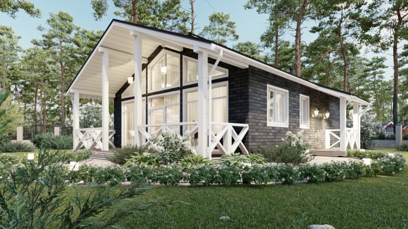 Данный дом спроектирован с учетом максимального комфорта для жильцов. В нем предусмотрены две спальни, которые идеально подойдут для проживания семьи с детьми или для создания отдельной рабочей зоны. Большая кухня-гостиная со вторым светом — это сердце дома, которое служит местом для семейных встреч и приема гостей.
